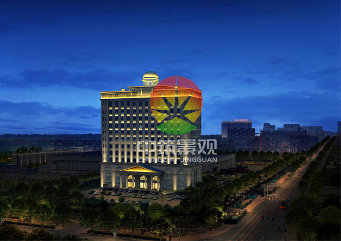 以暖黃光為基調,分層渲染建筑立面 ,彰顯行政建筑的端莊大氣。