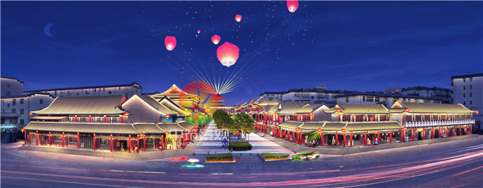 根據古建筑特點,分層照亮建筑結構,整體氛圍熱鬧繁華。