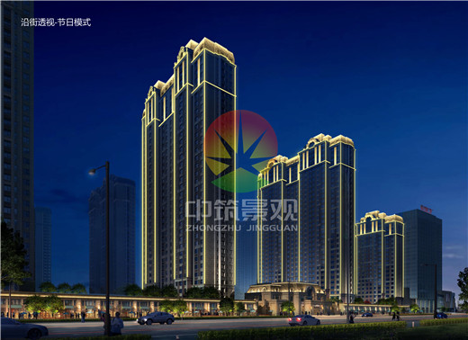 (沿街)以商業(yè)、住宅等業(yè)態(tài)形式組合而形成的高檔次多業(yè)態(tài)智能化建筑,設(shè)計應(yīng)充分注意這一基本思路,通過光的強(qiáng)弱變化和色彩組合,使建筑物在夜幕降臨后淋漓盡致的表現(xiàn)出特有的風(fēng)格。充分利用各種燈光的光學(xué)屬性,塑造奪目而不眩目、簡約而不簡單、華麗而不華眾的現(xiàn)代化標(biāo)志性建筑形態(tài)。